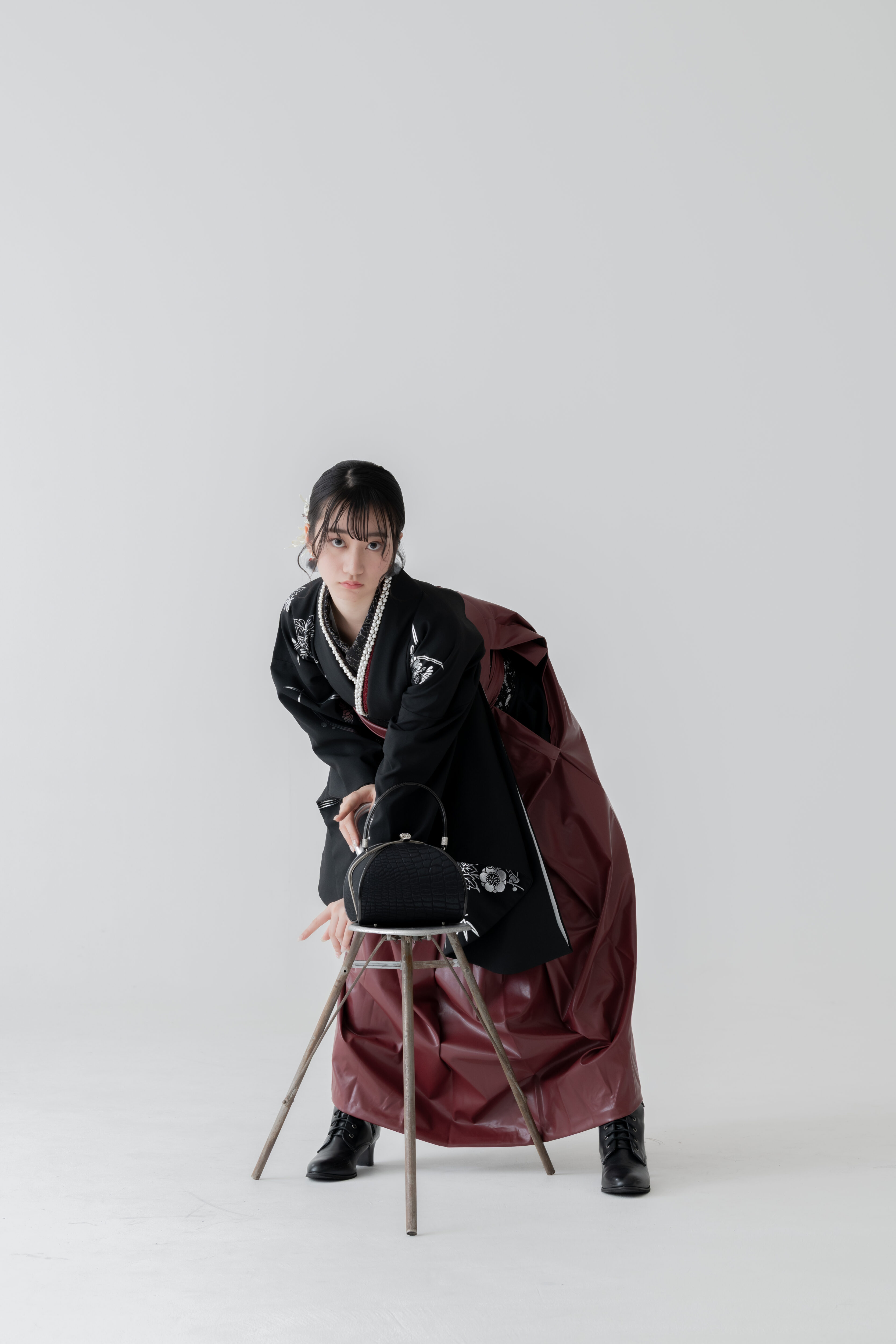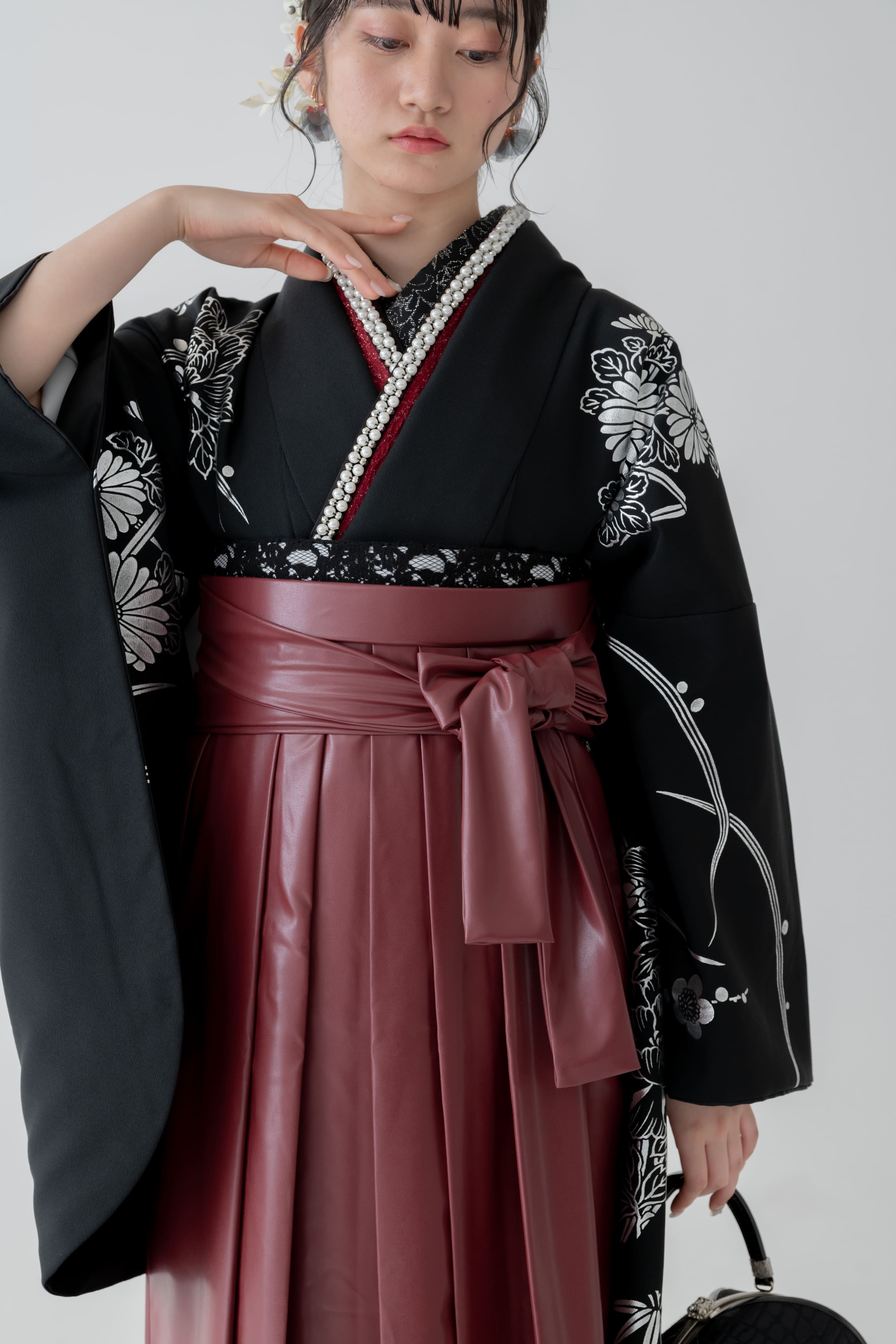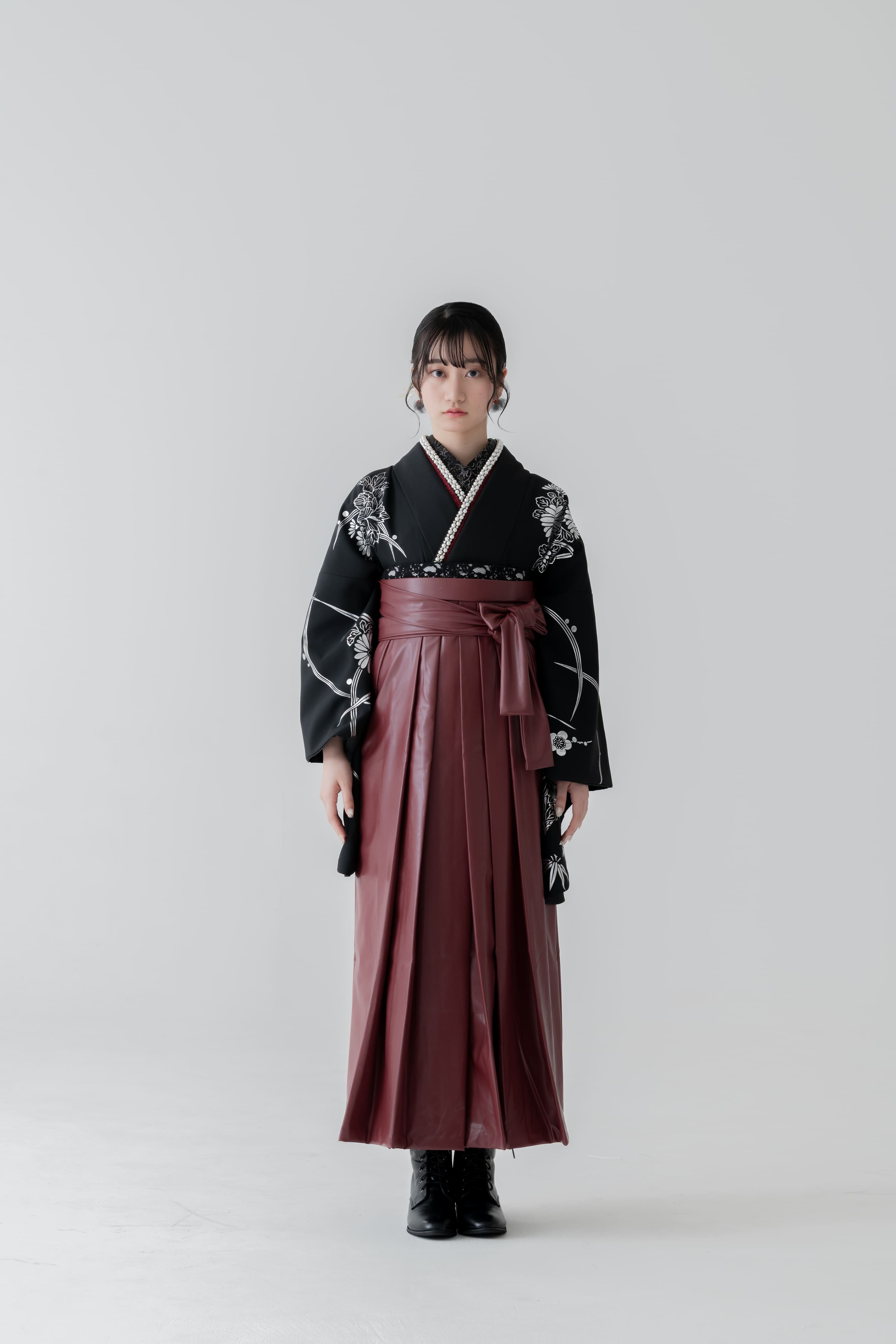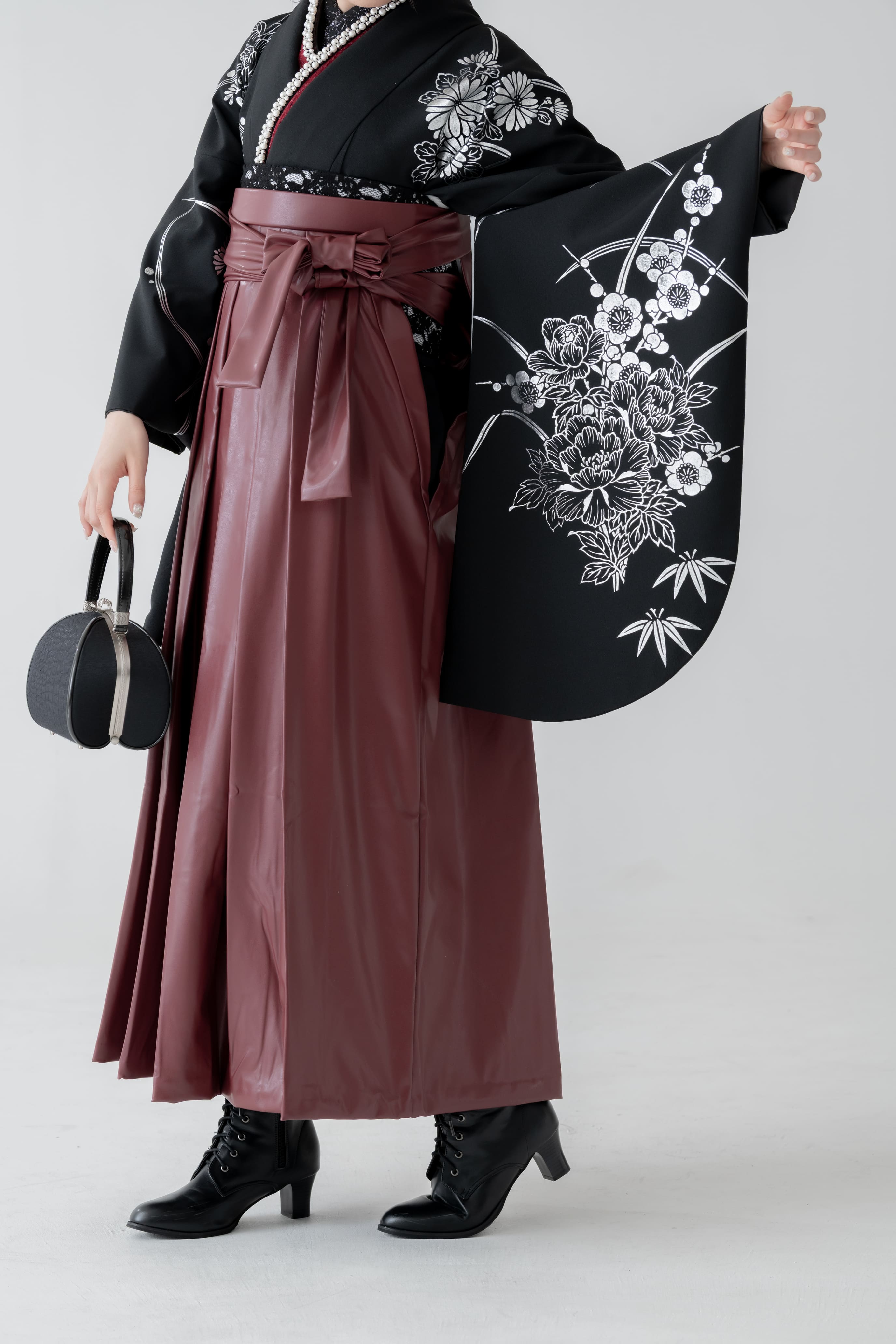 銀彩2尺袖×レザー生地袴